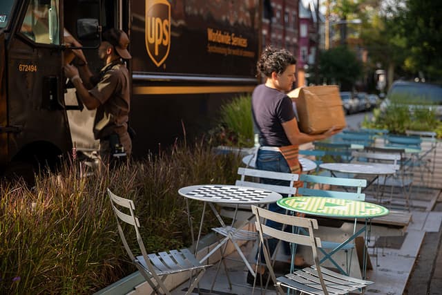 Providing seating and shade to restaurants supports local business while creating a dynamic street life.
